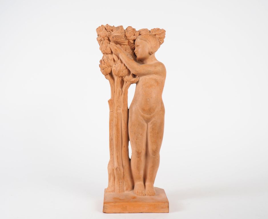 Henri Paul REY. "jeune fille à la colombe" Sculpture en terre cuite ...