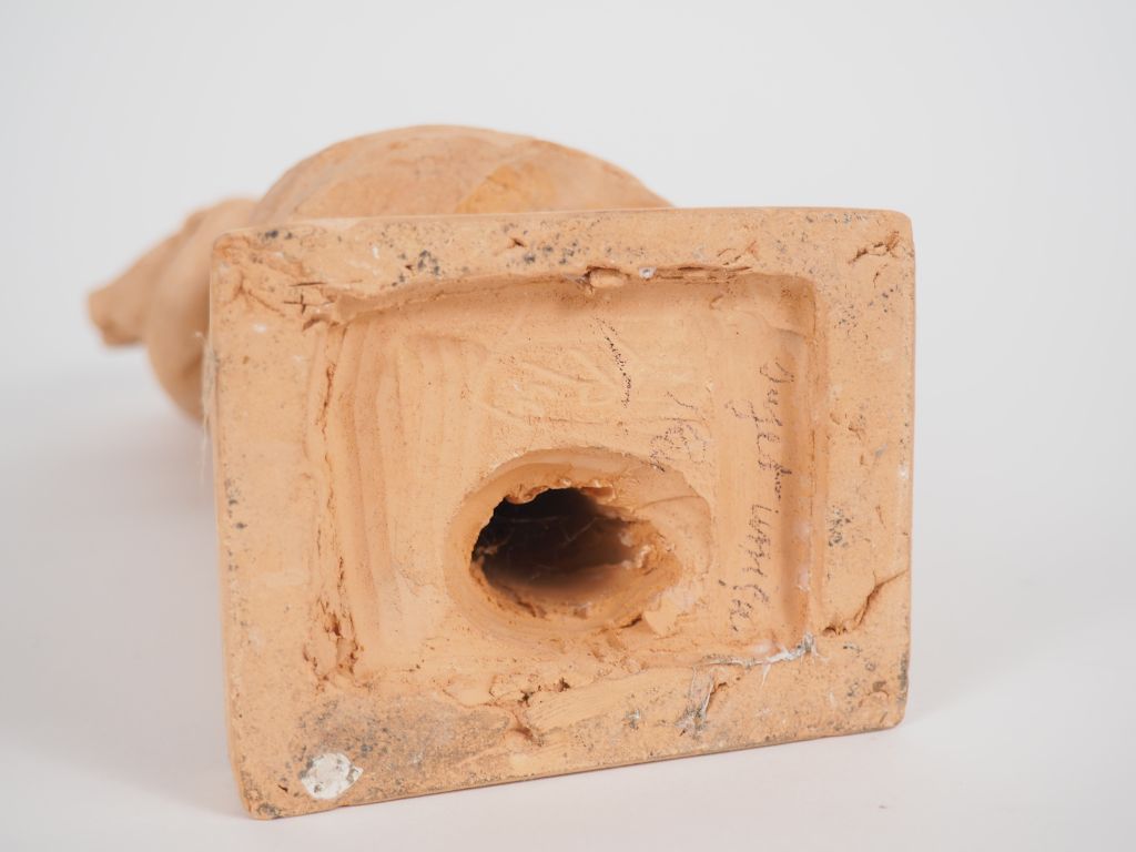 Henri Paul REY. "jeune fille au poisson" Sculpture en terre cuite Signée (accident au poisson) H. 29 cm
