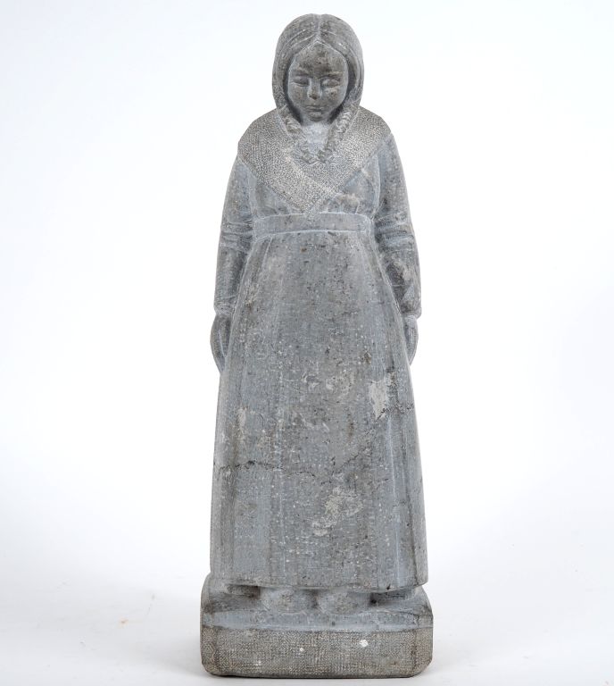 Henri Paul REY. "jeune paysanne aux nattes" Sculpture en pierre non signée H. 48 cm