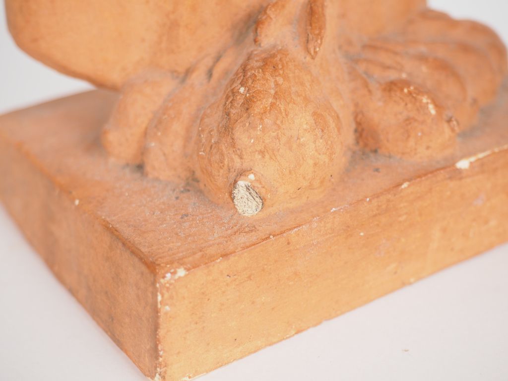 Henri Paul REY. "jeune paysanne nourrissant ses lapins" Sculpture en terre ou platre patiné Signée H. 28 cm (petit accident sur le lapin)