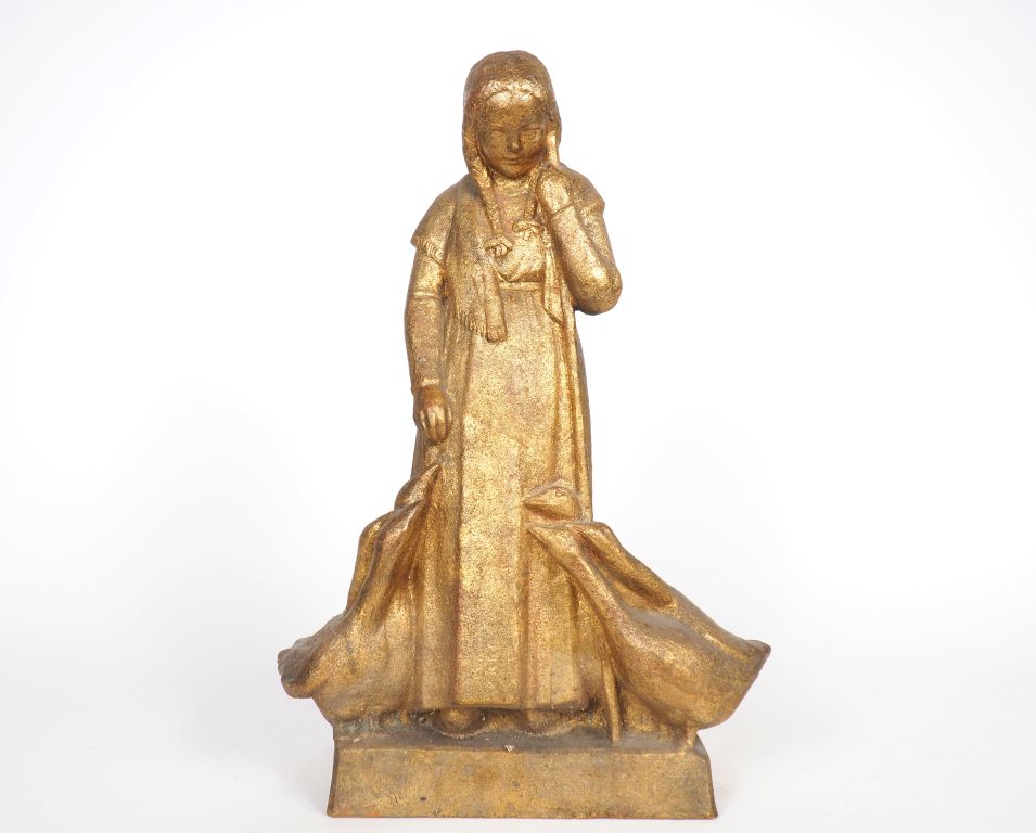 Henri Paul REY. "la gardienne d'oies" Sculpture en terre cuite dorée Signée H. 43 cm