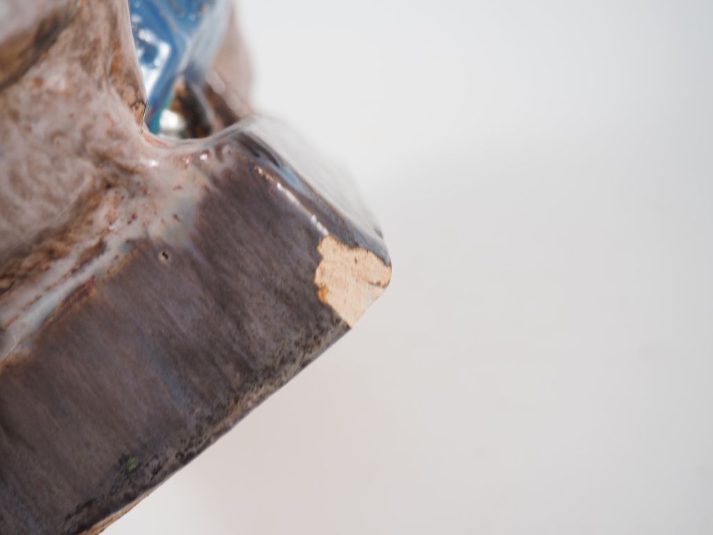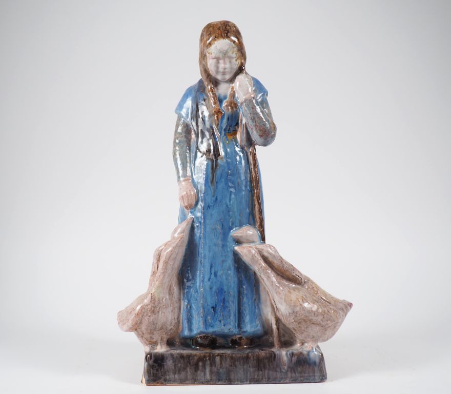 Henri Paul REY. "la gardienne d'oies" Sculpture en terre cuite émaillée polychrome non signée H. 46 cm (petite égrenure)