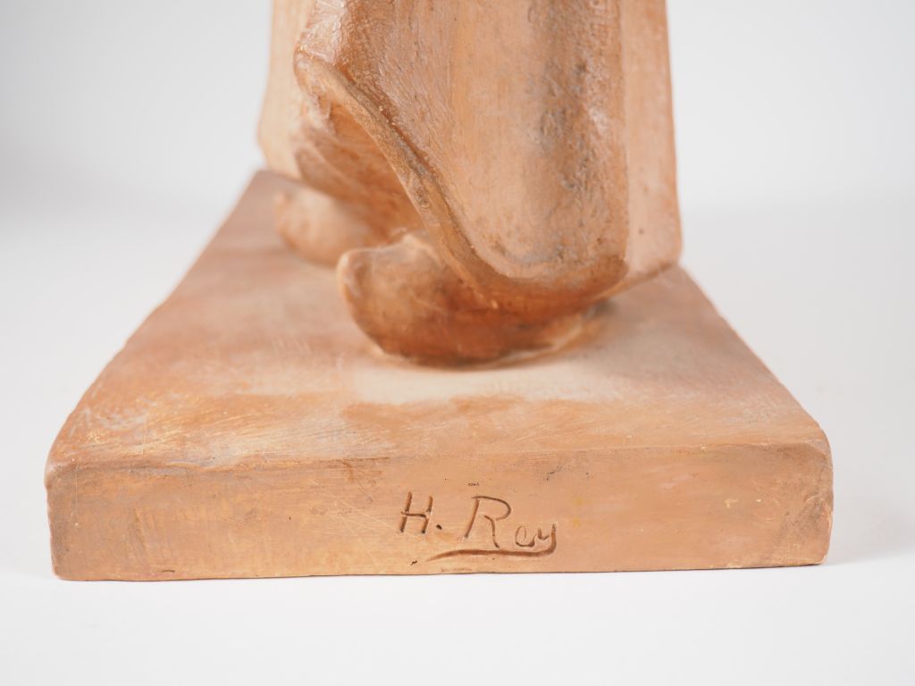 Henri Paul REY. "les deux jeunes paysannes" Groupe en terre cuite Signé H. 40 cm