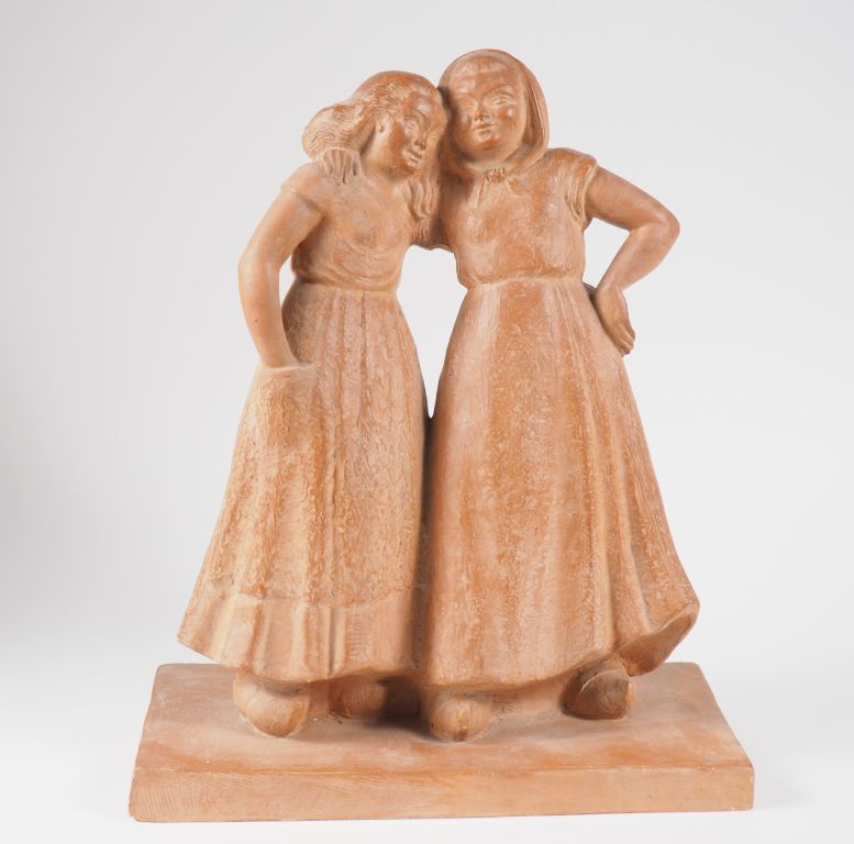 Henri Paul REY. "les deux jeunes paysannes" Groupe en terre cuite Si...