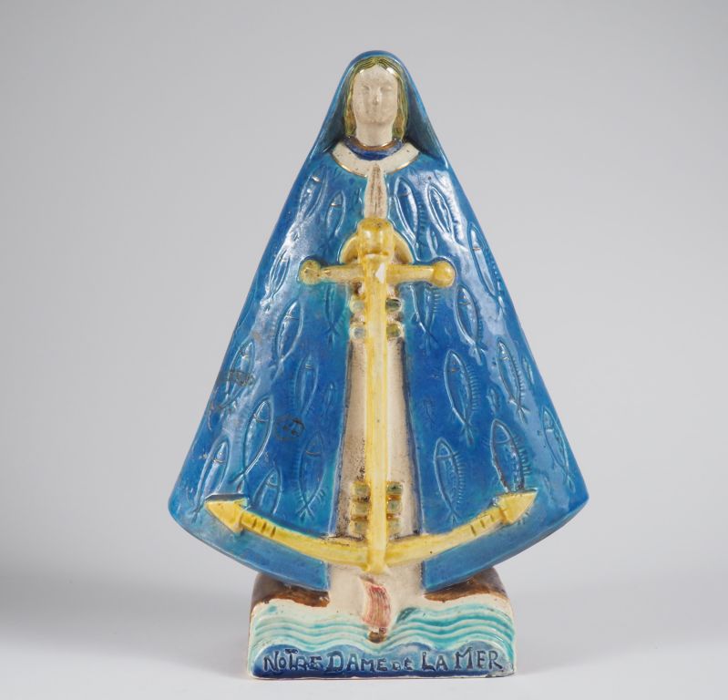 Henri Paul REY. "Notre dame de la mer" Sculpture en platre émaillé polychrome Signée H. 26 cm (micro égrenure)