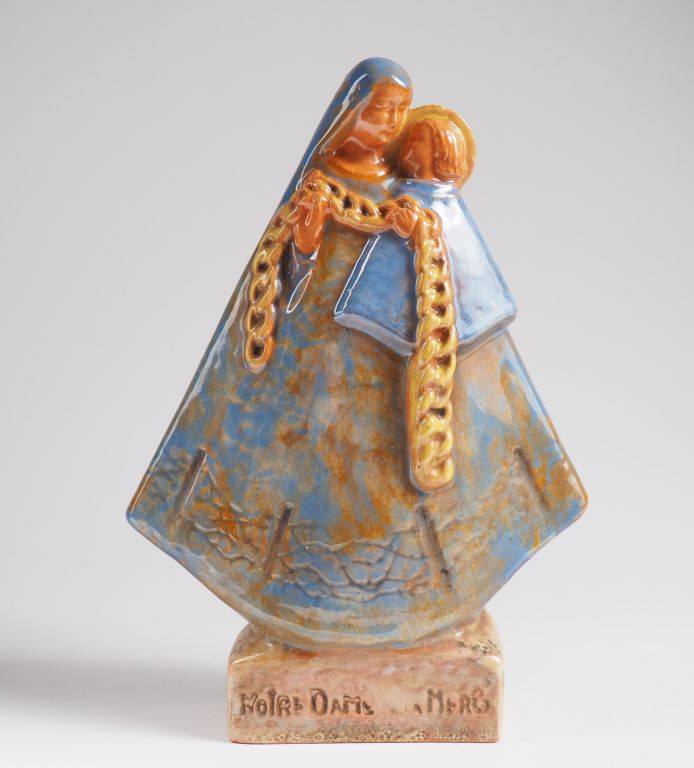 Henri Paul REY. "Notre Dame de la Merci" Sujet en terre cuite émaillée polychrome H. 25,5 cm