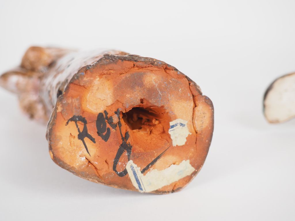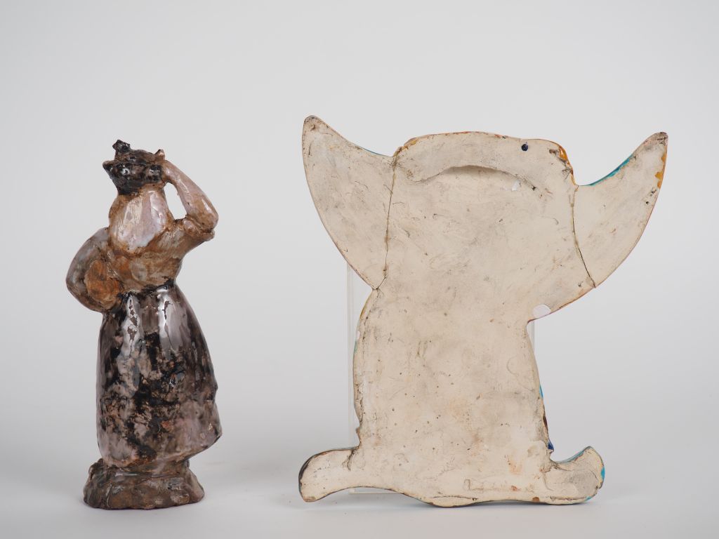Henri Paul REY. "paysanne" Sujet en terre cuite vernissée polychrome Signée H. 19,5 cm Henri Paul REY. "danseuse bretonne" Sujet en terre vernissée polychrome (accidents)