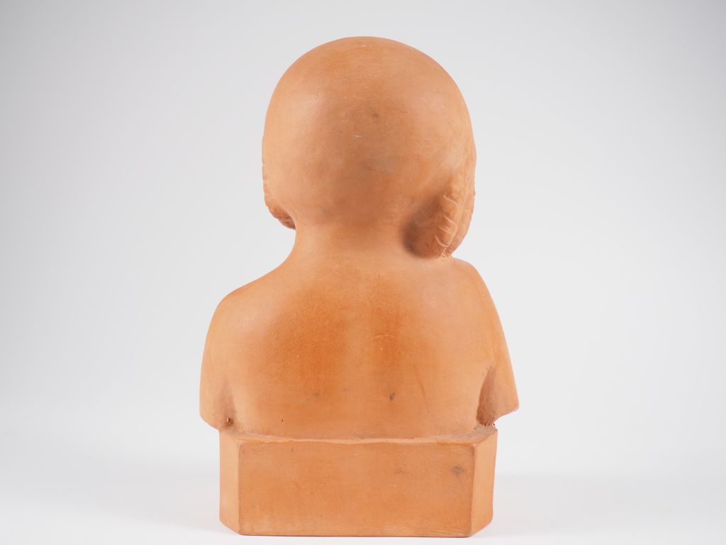 Henri Paul REY. "Portrait de fillette en buste". Sculpture en terre cuite Signée. H. 24 cm