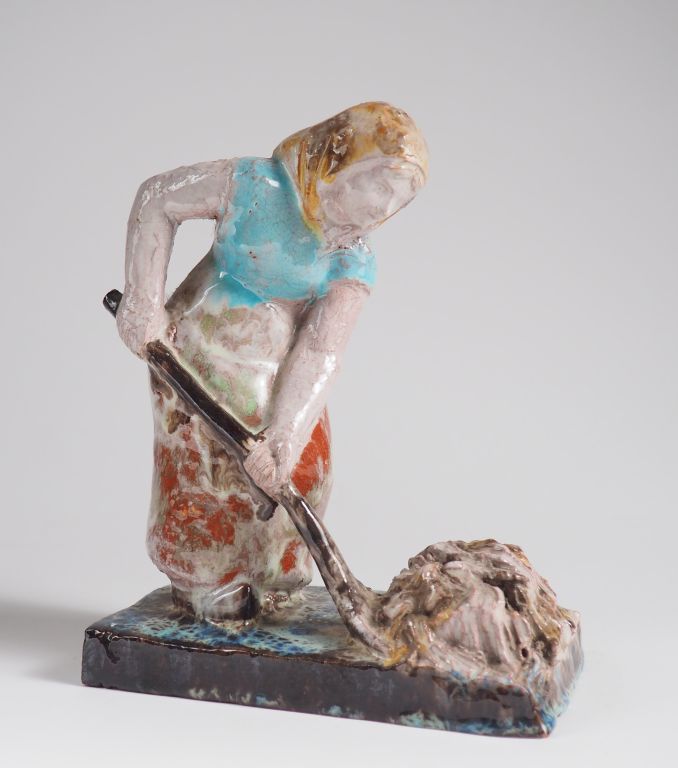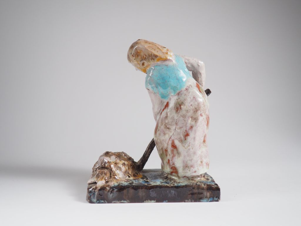 Henri Paul REY. "ramasseuse d'algues" Sculpture en terre cuite vernissée polychrome Signée H. 20 cm