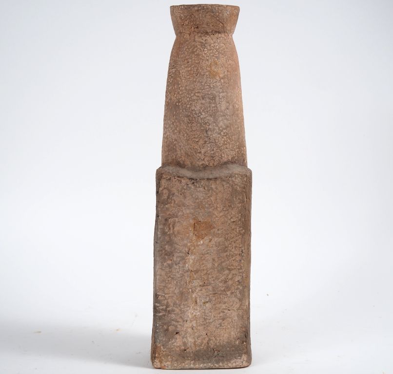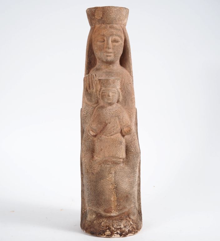 Henri Paul REY. "Vierge à l'enfant romane" Sculpture en terre patinée Signée H. 45,5 cm (petite égrenure)