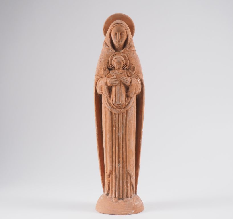 Henri Paul REY. "Vierge à l'enfant" Sculpture en terre cuite Signée H. 36 cm (petits accidents)