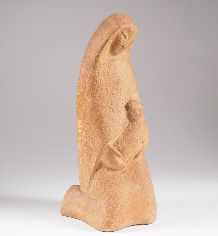 Henri Paul REY. "Vierge à l'enfant" Sculpture en terre cuite Signée H...