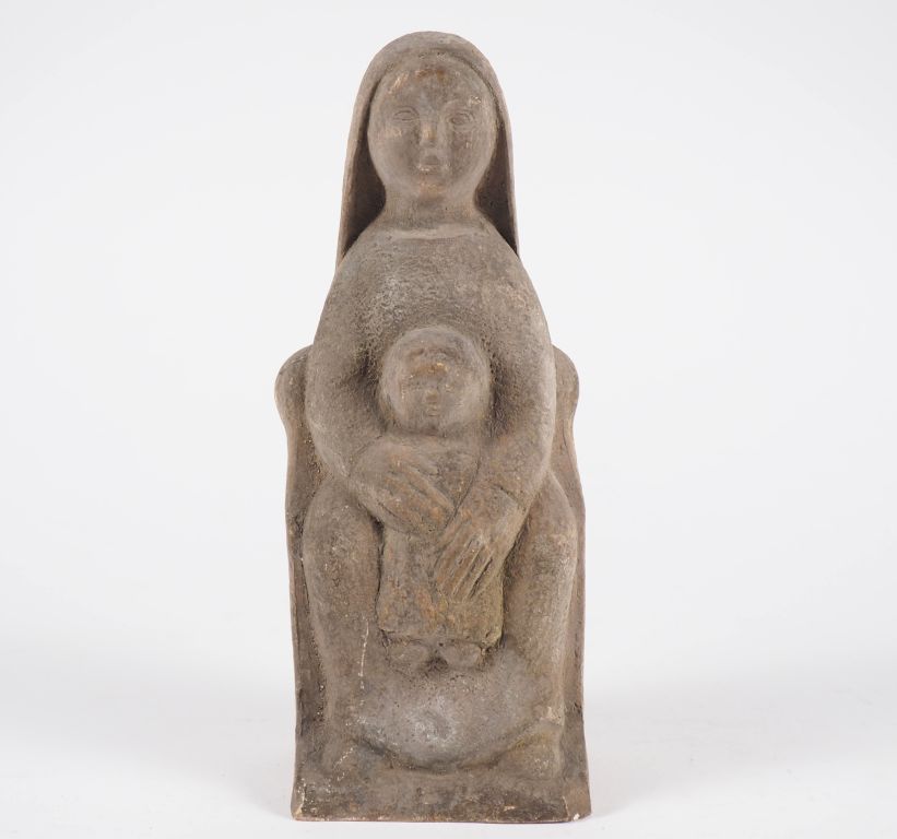 Henri Paul REY. "Vierge à l'enfant" Sculpture en terre cuite Signée H...