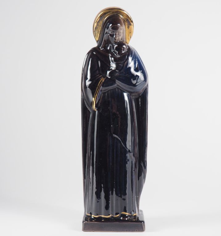 Henri Paul REY. "Vierge à l'enfant" Sujet en terre cuite polychrome ...