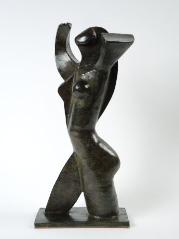 Lot de J. C DELANIAU.'Femme'. Sculpture en bronze à patine brune. au prix de 800 à 1000 € en vente aux enchères par l'hôtel des ventes Primardeco