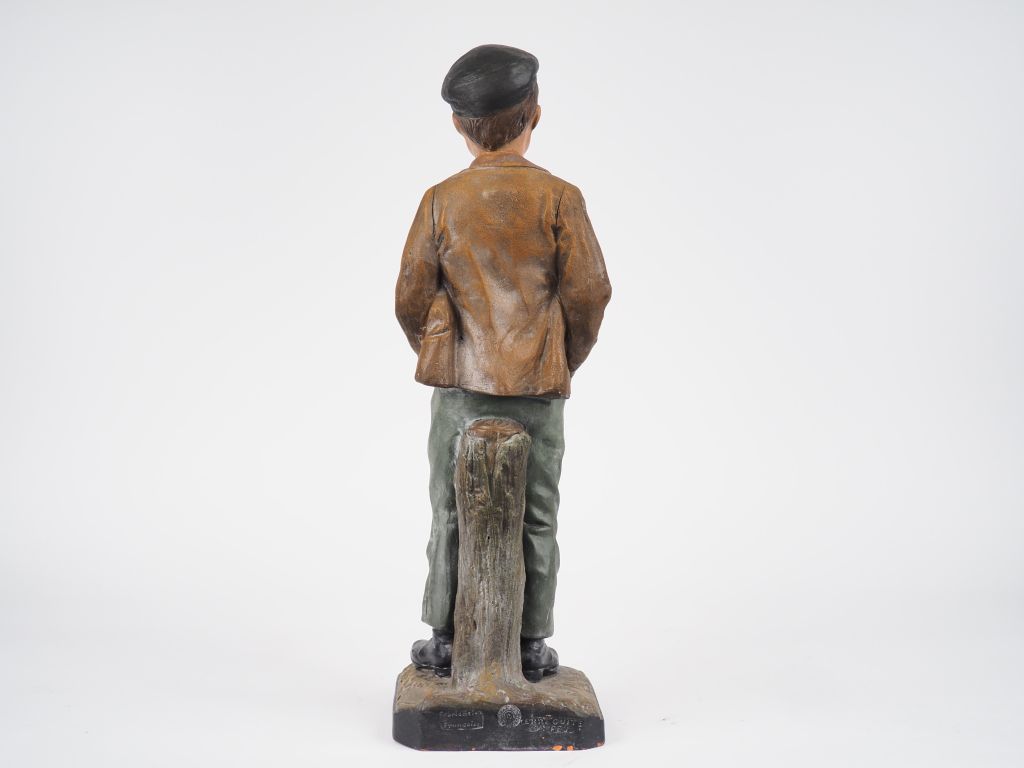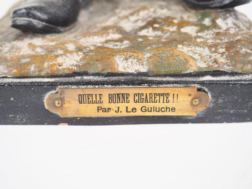 J. Le GULUCHE. "Quelle bonne cigarette". Sculpture en terre cuite polychrome. Signée. H. 50,5 cm.