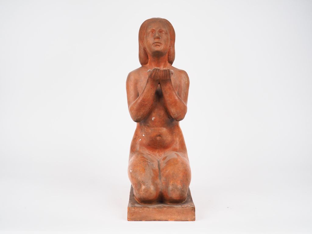 Jean TARGET. 'L'offrande'. Sculpture en terre cuite. Signée. H. 42 ...