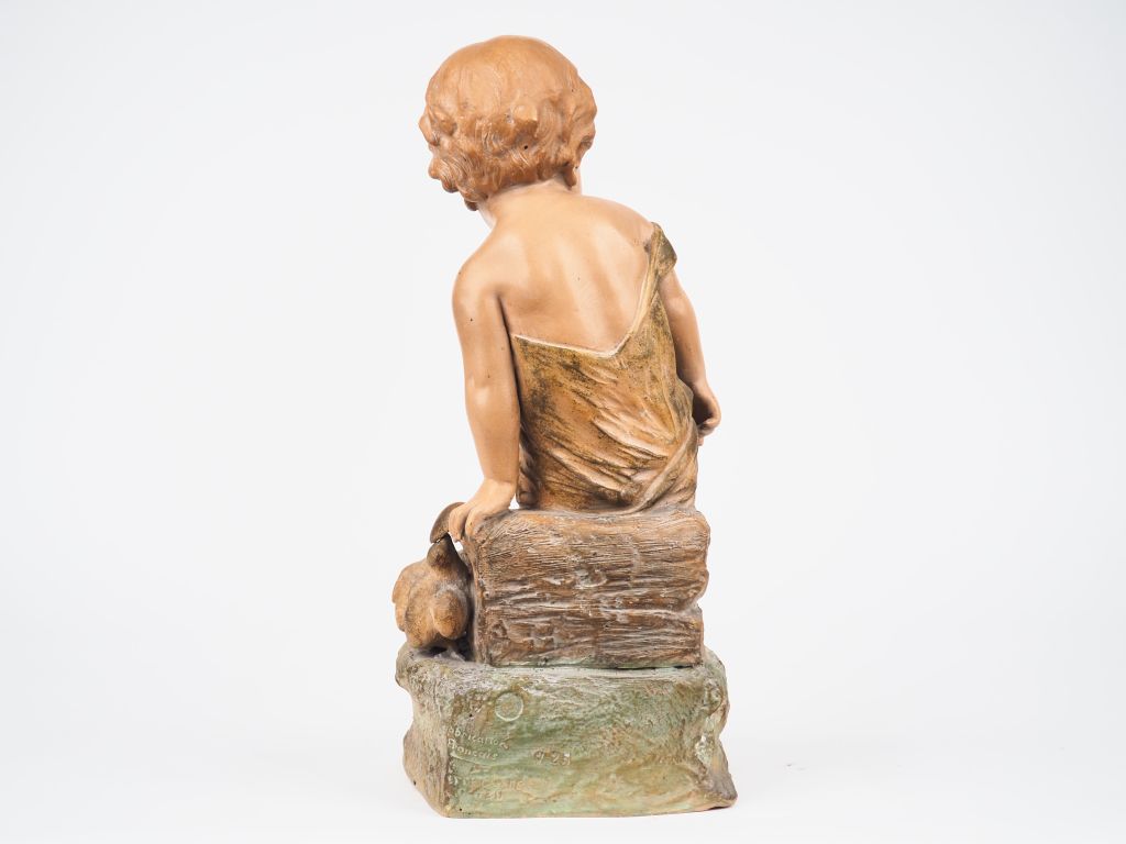 L. VERGNANO. "Le malheur de l'un…". Sculpture en terre cuite polychrome. Signé. Dim. 39 x 15 x 17,5 cm.