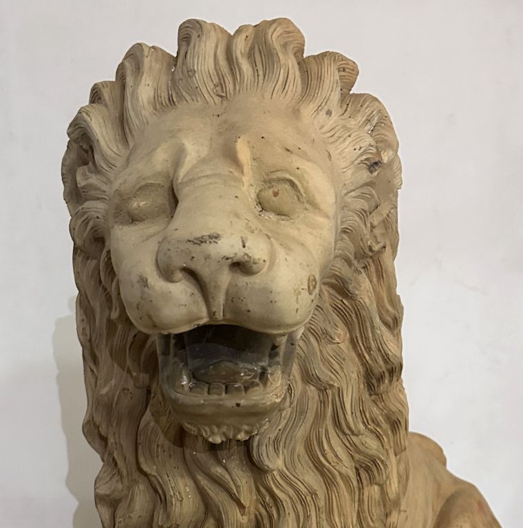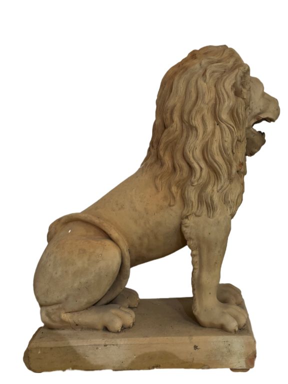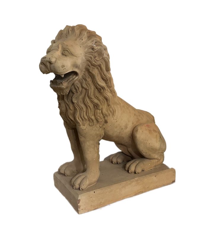 MANDEVILLE ET BERNIER à Castelnaudary "lion assis" Grand sujet en terre cuite Signé Dim. 74 x 67 x 29 cm
