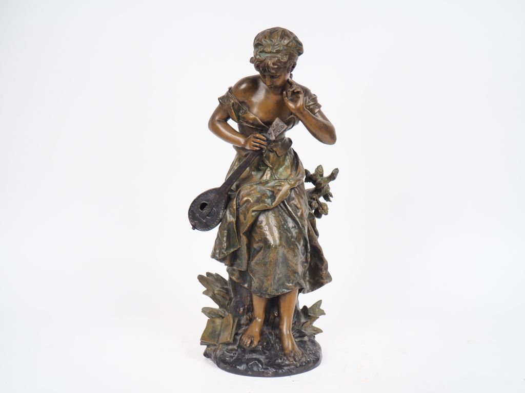 Lot de MOREAU. "Poésie moderne". Sujet en régule polychrome. H. 56 cm au prix de 200 à 300 € en vente aux enchères par l'hôtel des ventes Primardeco