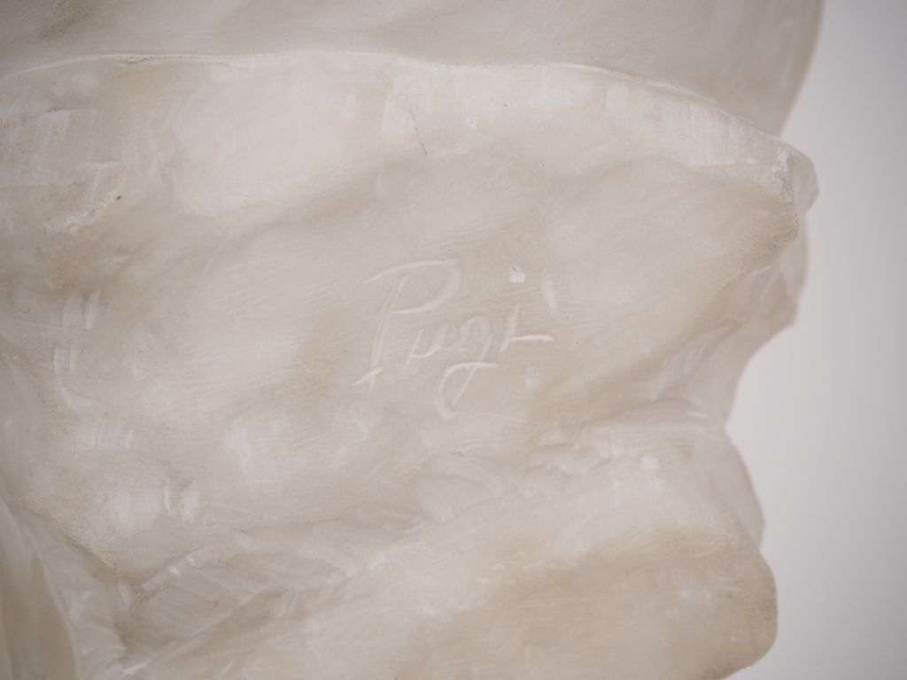 PUGI. "La jeune italienne" Sculpture en albatre. Signée. H. 46 cm (a...