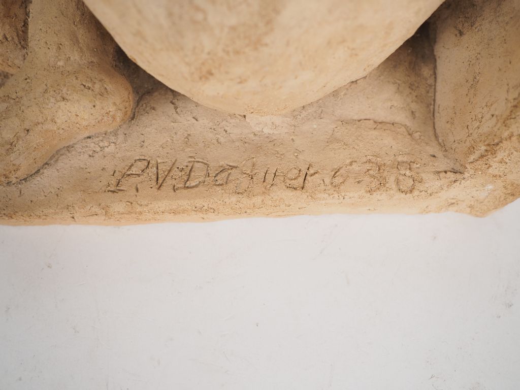 PV. DAGUET. "jeune femme nue assise" Sculpture en terre cuite Signée et datée juin 1938 Dim. 28 x 27 x 17 cm (petits accidents)