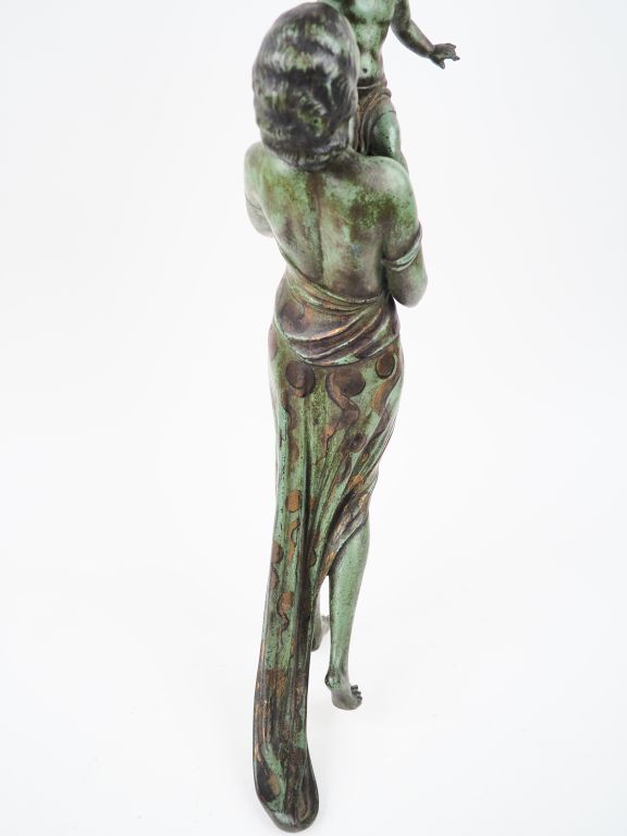 Sculpture 1940 en métal patiné vert et rehaussé d'or "maternité" H. 60...
