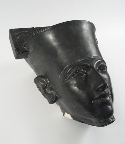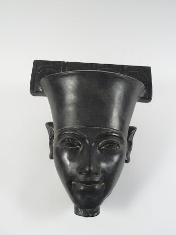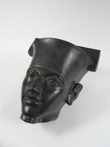 Sculpture en plâtre patiné noir 'Masque d'Egyptien'. H. 36 cm (petit é...