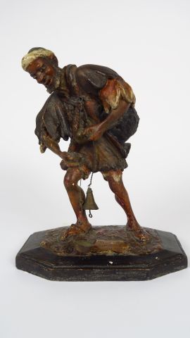 Lot de Sujet 1900 en plâtre polychrome 'Porteur d'eau d'Afrique du Nord'. Sig au prix de 100 à 150 € en vente aux enchères par l'hôtel des ventes Primardeco