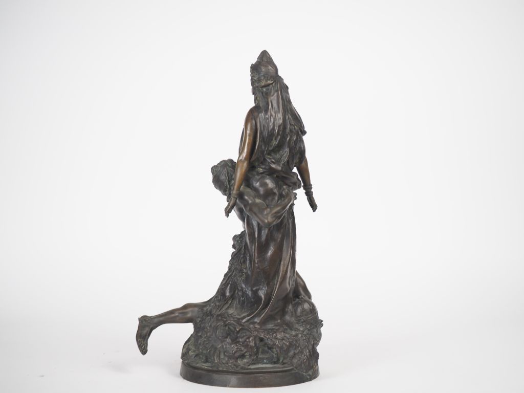 Théodore RIVIERE. "Salambô chez Mâthô" dit aussi "Carthage". Groupe en bronze à patine brune. Signé, titré et daté 1892, cachet du fondeur Susse frères. H. 41 cm.