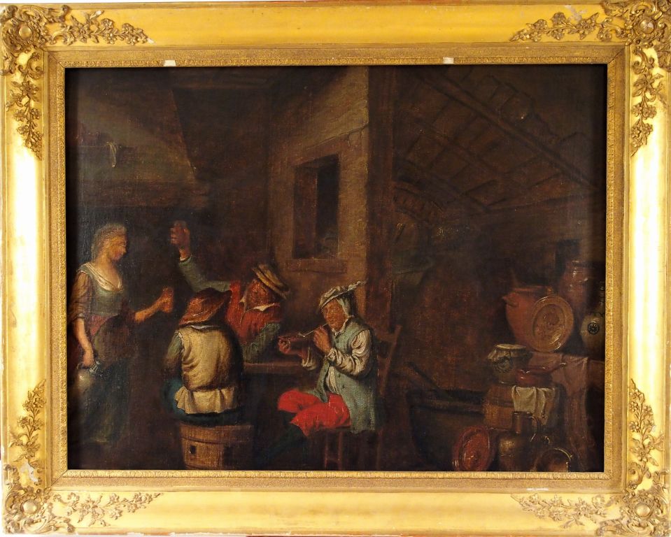 Lot de Ecole du Nord XVIIIème "Scène d'auberge". Huile sur toile. 76 x 90 cm au prix de 600 à 800 € en vente aux enchères par l'hôtel des ventes Primardeco