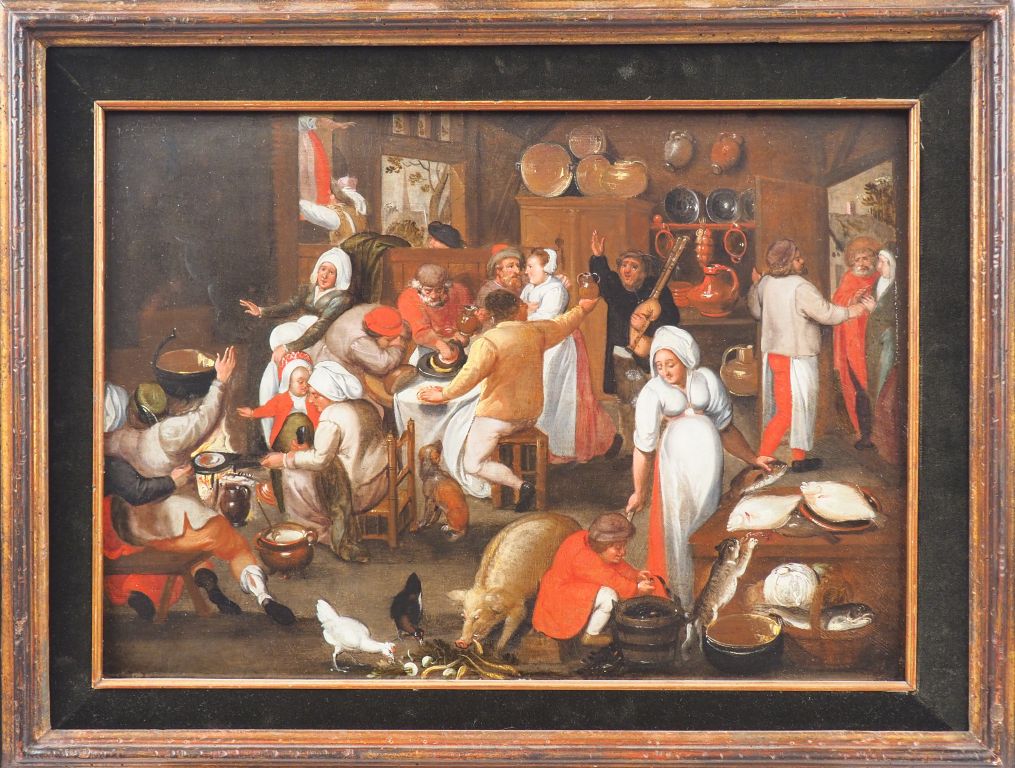 Lot de Ecole flamande début XVIIème. "Scène de taverne" Huile sur panneau. Di au prix de 1500 à 2000 € en vente aux enchères par l'hôtel des ventes Primardeco