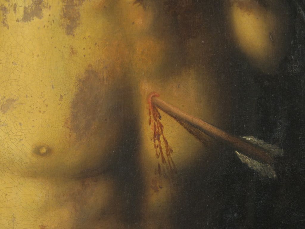 Ecole flamande XVIIème "Saint Sébastien" Huile sur toile. 73,5 x 56 cm (restaurations, réentoilée)