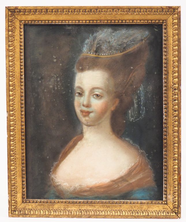 Ecole Française 1900. "portrait de jeune fille en robe du XVIIIème" Pastel Dim. À vue : 40 x 31,5 cm
