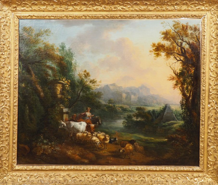 Ecole française (attribué à Jean Baptiste LALLEMANT). "pastorale" Huile sur toile Dim. 72,5 x 91 cm dans un joli cadre en bois doré