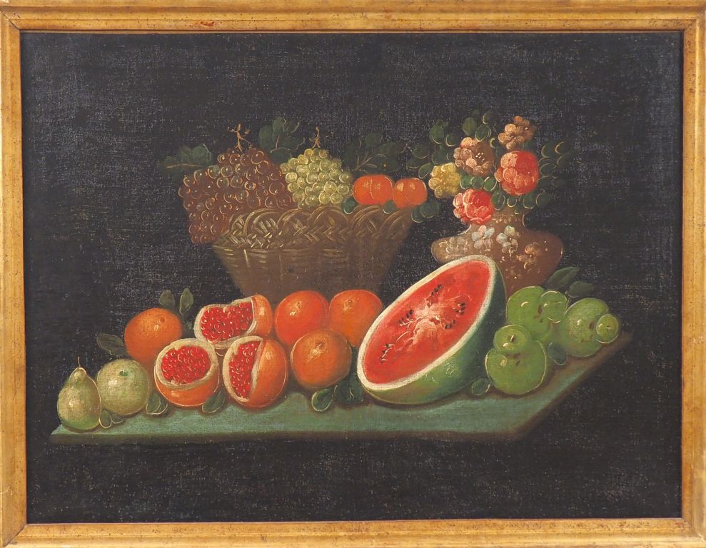 Ecole française dans le goût du XVIIIème. "Natures mortes". Paire d'huiles sur toiles. Dim. 61 x 82 cm. (Réentoilage, restaurations).