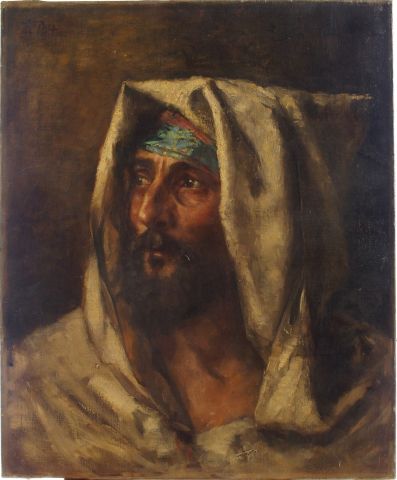 Ecole française de la fin du XIXe 'Portrait d'arabe'. Huile sur toile monogrammée en haut à gauche ED et une Croix. 61 x 50 cm