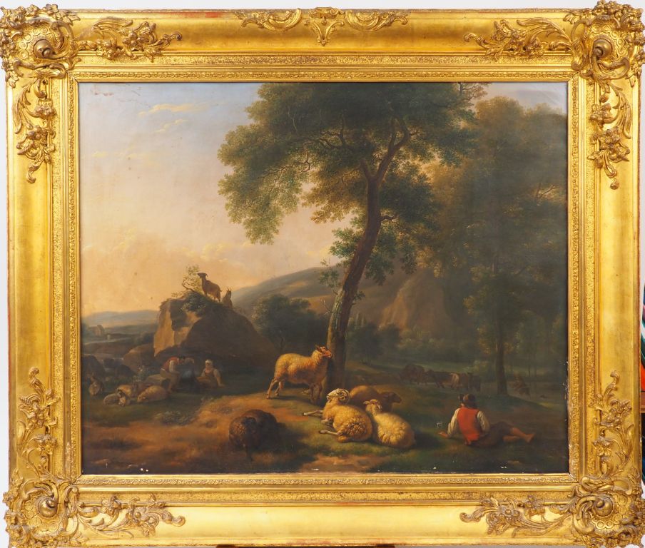 Ecole française début XIXème. 'Bergers et leurs troupeaux'. Huile sur ...
