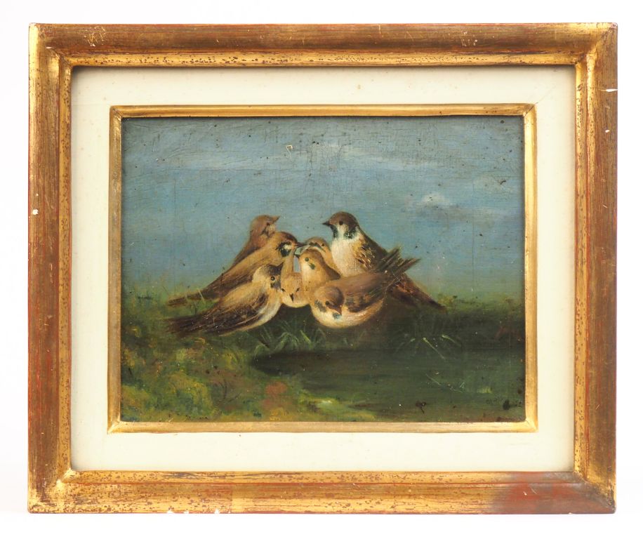 Ecole française début XIXème. "Nid d'oiseaux". Huile sur toile. Dim. 17 x 22,5 cm.