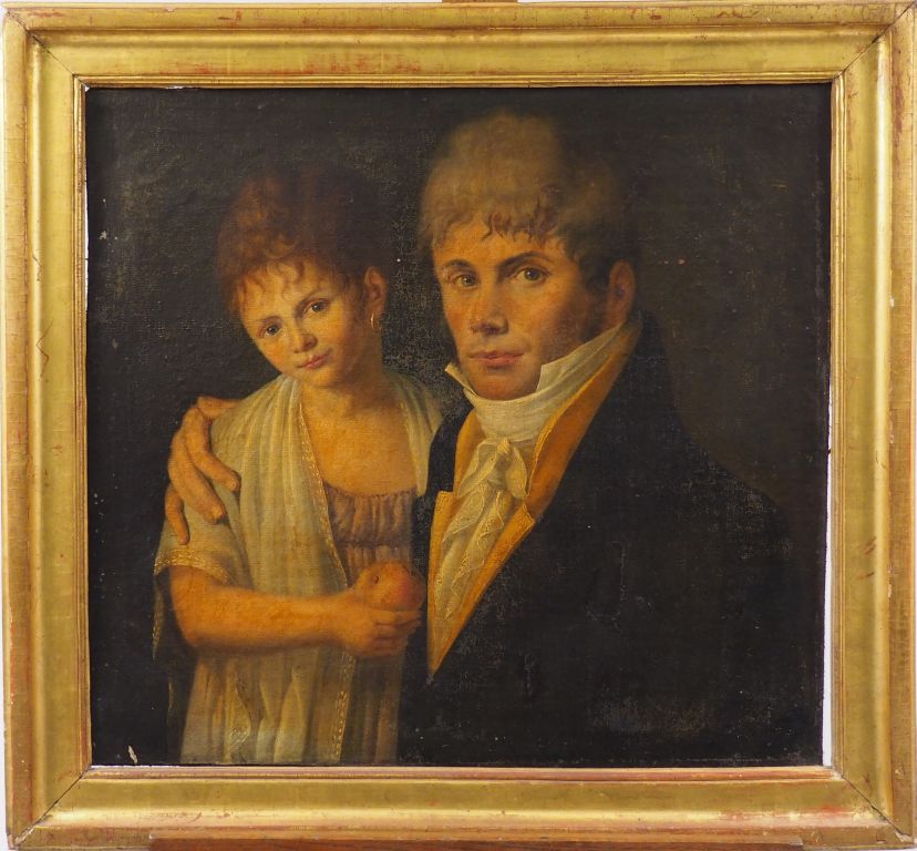 Lot de Ecole française début XIXème. "Père et sa fille". Huile sur toile. Dim au prix de 300 à 400 € en vente aux enchères par l'hôtel des ventes Primardeco
