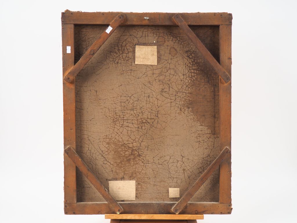 Ecole française fin XIXème. "Fleurissement de la Vierge". Huile sur toile signée en bas à gauche. Dim. 65 x 54 cm. (Restaurations)