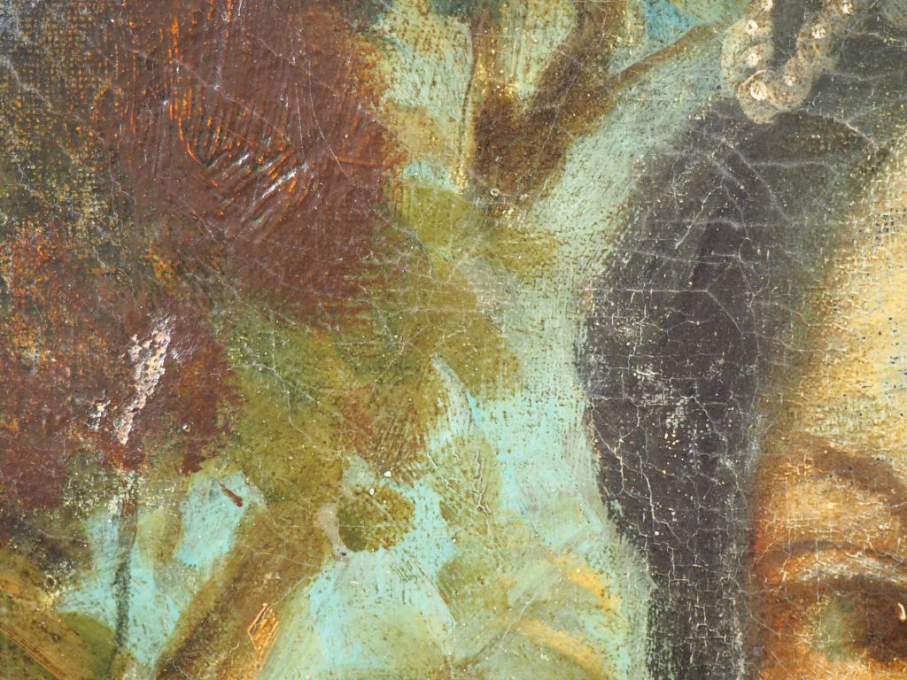 Ecole française fin XIXème. "portrait d'élégante au bouquet de fleurs" Huile sur toile Dim. 55,5 x 40,5 cm (accidents)