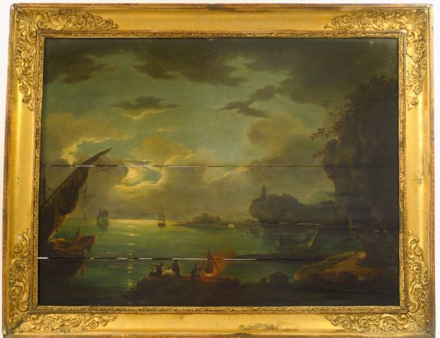Ecole française fin XVIIIème début XIXe "Marine nocturne" Huile sur panneau Dim. 58,5 x 78 cm (accidents et restaurations)