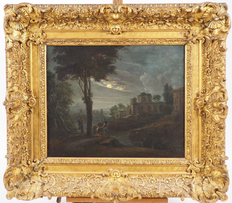 Ecole française fin XVIIIème - début XIXème. " Partie de pêche au clair de lune". Huile sur toile. Dim. 40 x 45 cm.