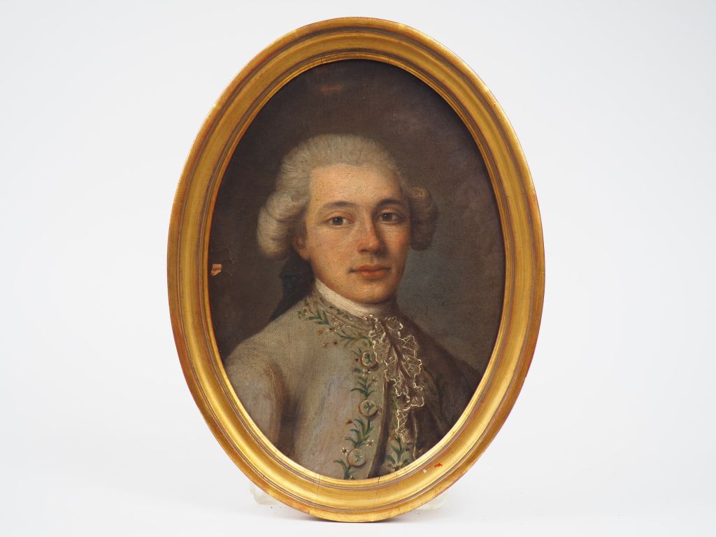 Ecole française fin XVIIIème. 'Portrait de jeune homme en médaillon'. Dim. : 32,5 x 23,5 cm. (petit accident)