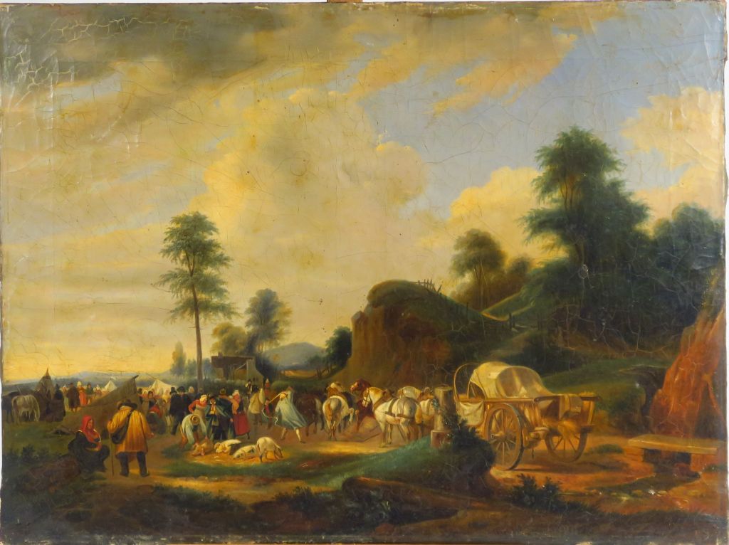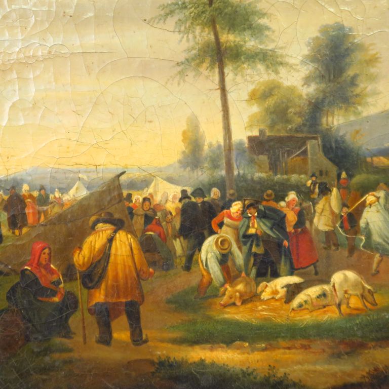 Lot de Ecole française XIXème. "le marché aux cochons". Huile sur toile. Dim. au prix de 300 à 400 € en vente aux enchères par l'hôtel des ventes Primardeco