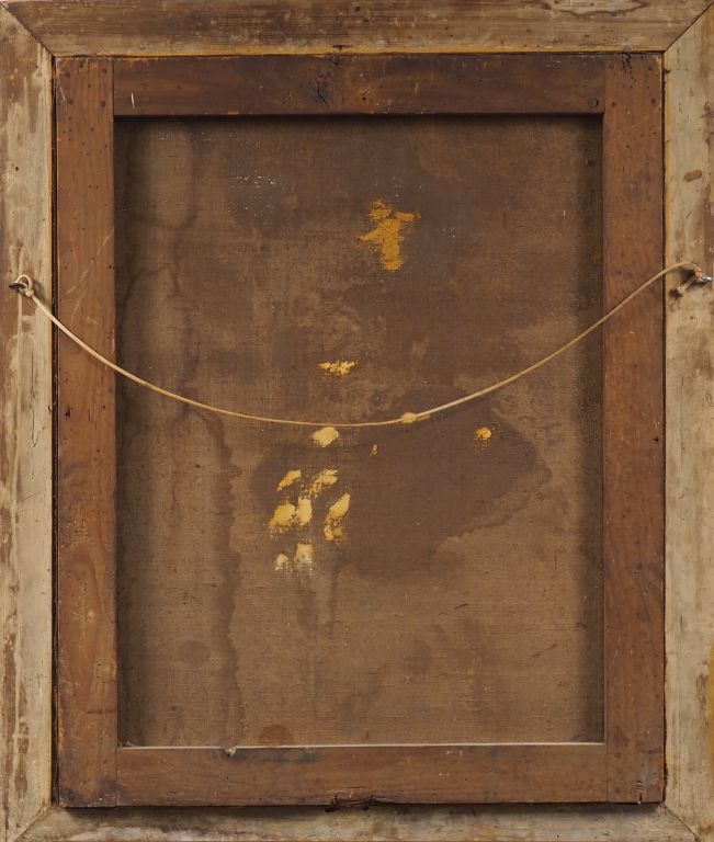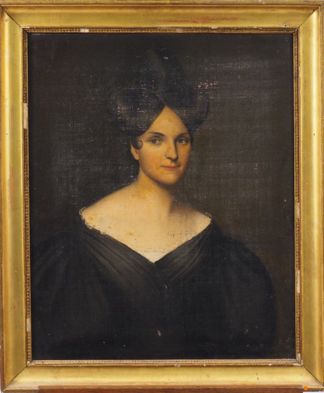 Ecole française XIXème. "Portrait de jeune femme à la robe noire". Huile sur toile. Dim. : 73,5 x 59,5 cm. (Petits accidents).