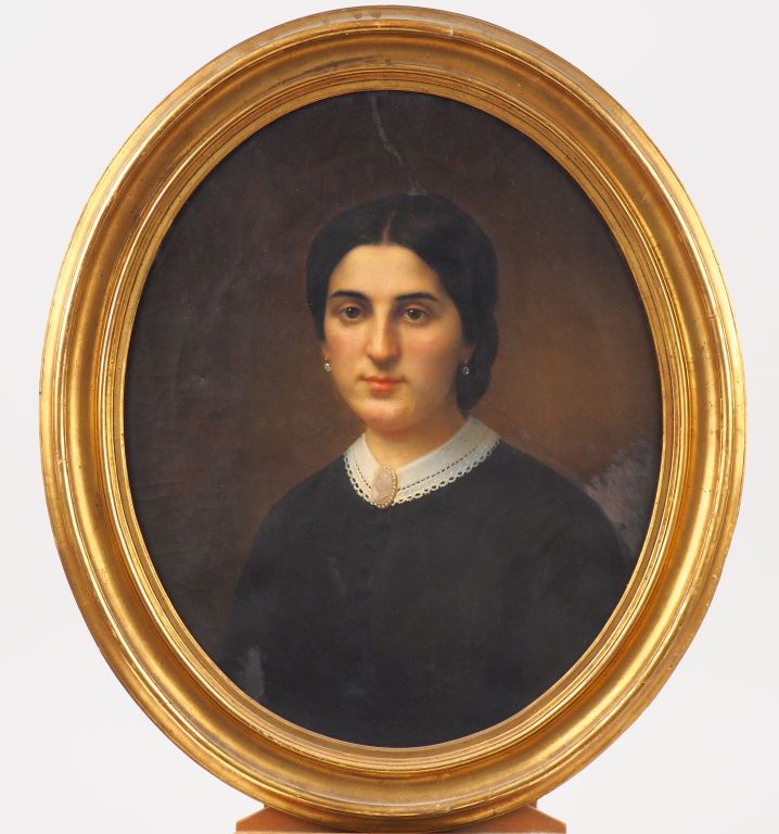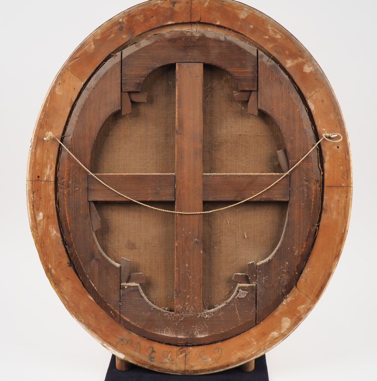 Ecole française XIXème. "Portrait de jeunes époux". Paire d'huiles sur toiles dans des cadres ovales. Dim. 65 x 54 cm. (Restauration, réentoilage).