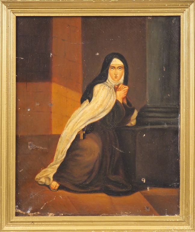 Ecole française XIXème. "Portrait de religieuse". Huile sur toile. Dim. 46,5 x 38 cm. (Accidents).