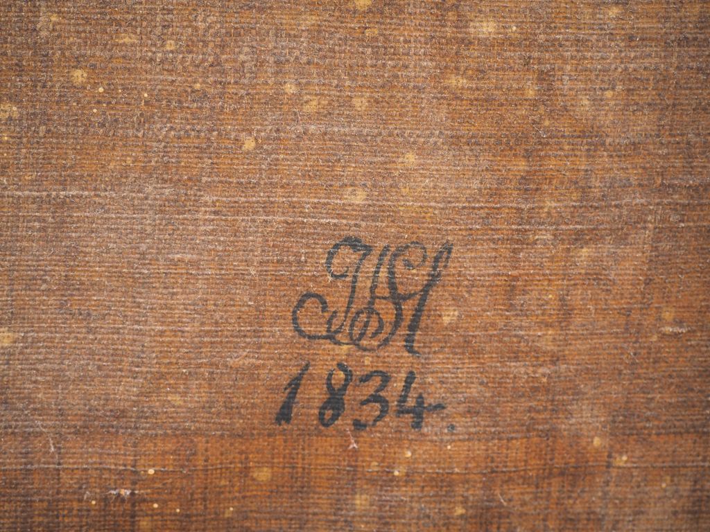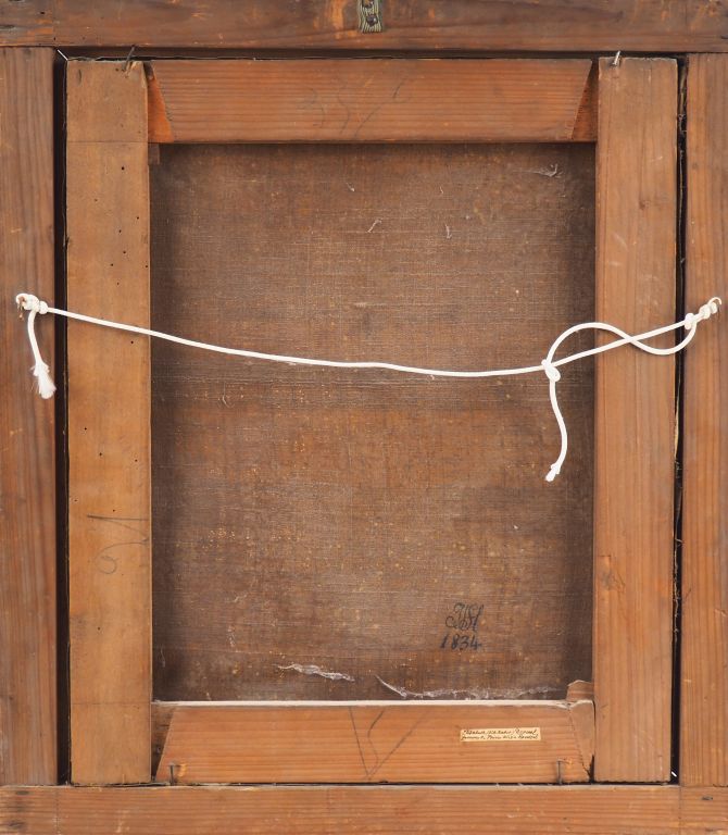 Ecole française XIXème. "Portrait d'Elisabeth". Huile sur toile, monogrammée et datée 1834 au dos. Dim. 49 x 41 cm.